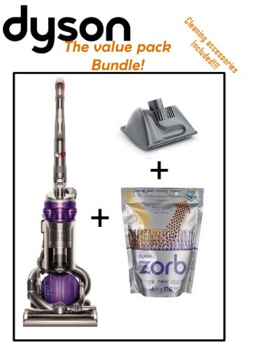 Equipped with Dyson's signature Ball technology, this upright vacuum cleaner easily twists and turns around furniture and obstacles for thorough cleaning throughout the house--no more missed angles or tiresome back-and-forth vacuuming. Its ball design encapsulates the machine's powerful motor, creating a low center of gravity for even easier maneuverability. Designed for homes with pets, the unit's motorized brushbar features powerful bristles that remove dirt and pet hair from carpets, while its mini turbine head thoroughly cleans confined spaces such as upholstery, stairs, and the car. It also supplies a quick-draw Telescope Reach wand, which expands to offer 16 feet of reach for stairs, drapes, upholstery, and more. The vacuum cleaner uses Root Cyclone technology to separate dirt from the air by centrifugal force, which ensures efficient cleaning with no clogging or loss of suction.For cleaner expelled air, the unit comes with a washable lifetime HEPA filter that traps microscopic allergens such as pollen and bacteria. In fact, the air expelled from a Dyson has up to 150 times less bacteria and mold than the air you breathe, and all Dyson uprights are certified asthma friendly by the Asthma and Allergy Foundation of America. The unit's hygienic 1/3-gallon bin quickly empties without ever having to touch the dust--just press the button and dust empties from the bottom; the clear polycarbonate bin also allows for easily viewing the cleaning progress and gauging when it needs to be emptied. Other highlights include fingertip controls, a constant suction power of 220 air watts, a 24-3/5-foot cord, a maximum reach of 40-2/7 feet, and a lightweight design at only 16-1/8 pounds. On-board accessory tools include a combination tool and a stair tool attachment. The vacuum cleaner measures 12-1/5 by 15-2/5 by 42-2/5 inches and carries a five-year parts-and-labor warranty.Package includes: Mini turbine head, Combination Accessory Tool, Stair Tool, Dysolv Zorb Groomer